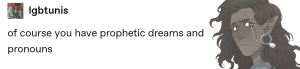 Eluviel's favourite nickname is Lu, only he's full of war crimes and vengeance instead of strawberry jelly