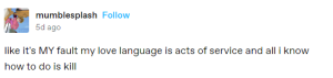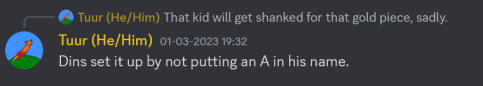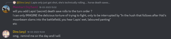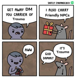 Dins doesn't really make an effort to dispel their reputation as "carrier of trauma" hahaha
