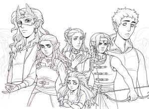 the usual suspects line up (before boarding the Flensed Servant) + some later NPCs