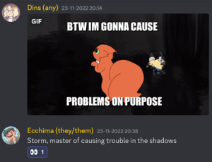 Inspired by Storm's penchant for stirring up trouble, Meinhart whispers into Dins' ear