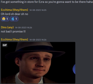 Ezra is trying their hardest to look trustworthy to Akram (session 5)
