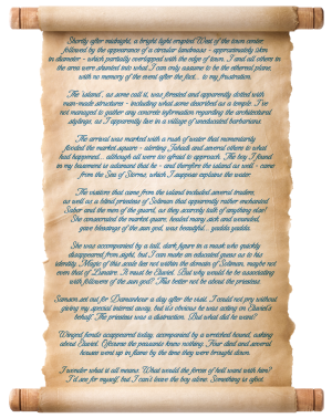 - a book about the history of Breheima, lying open on a passage about Sangrün the blood god who was revered here before the influence of Soliman and Lunaire reached Breheima: Storm takes it