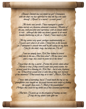 We head over to the well, where Frei leads the guard away. We slip by the water weird & meet up with Mi'Kal. He's ready with his notebook & a sharp chisel. Hali repeats the explanation of our plan to Aqueel: we're not ever leaving him in such a situation again, but if he can show us where he summoned the water, that would be helpful. With some trepidation, Aqueel agrees.