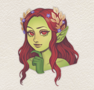 The goblin interrupts our babbling: “Fyllion, just open a portal, we’ll go meet Morrigan, the queen of this forest. She’s bound to welcome me in her arms when I bring her such an MVP”. At the same time Lutiel is helping us figure out Morrigan is the queen of the Night Court which wants to kill Fyllion, the goblin grins he’s got plans for the rest of us, Lutiel included.