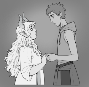 “I know the king of Storms & I know his child, presumably the child that was kidnapped. I haven’t yet clapped you in irons, because the child Aqueel shows some measure of affection for you all, and because I see you, Hali, are a relative… it’s around the eyes, you see, I reckon you’re one of Astarion’s offspring, right? Be that as it may, please do explain, quickly and concisely”.