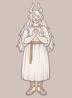 Since we’ve confirmed that we’re more interested in healing Grewishka than just casually murdering him for an affliction that’s not his fault and which he’s apparently managed well for a long time, Solace is happy to debate religion with us for a moment: don’t we agree that cleansing with fire and paladins and fighting is not how Eluvelon was?! That’s the only celestial envoy Soliman ever sent us, so doesn’t it make sense to adhere to that tradition?! Eluvelon only ever took up weapons to protect the land he’d been sent to in war.