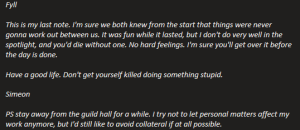 Ophelia barely even notices that she’s handing over the coin, because her eyes are already glued to the shakily written note, as if someone scribbled it with their non-dominant hand… Ophelia reads Simeon’s breakup note out loud, and sniffs that she doesn’t even understand why this guy thinks she was committed to or even impressed by him.